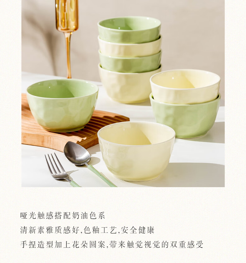 商品名称:妙迅碗套装家用2023新款陶瓷碗盘餐具整套轻奢碗筷北欧乔迁碗具礼盒装 奶黄奶绿双拼—4人食18件套 配置图详情见主图2
