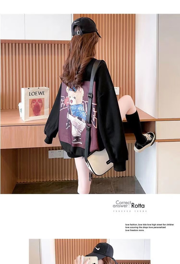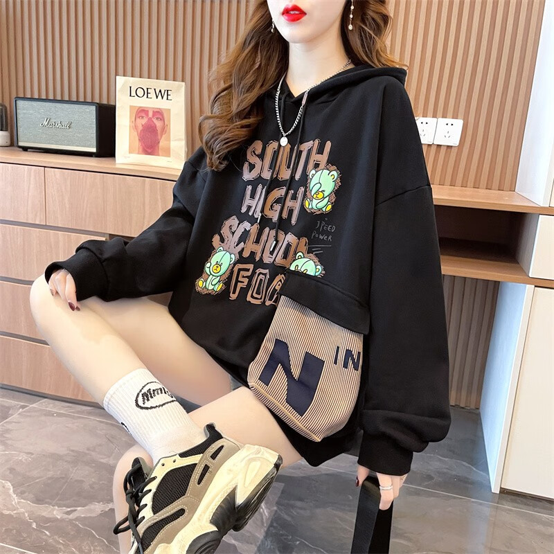 商品名称:凡龙春秋新款卫衣女韩版宽松慵懒风长袖上衣女ins印花潮网红同款显瘦 黑色 M【建议80-105斤】